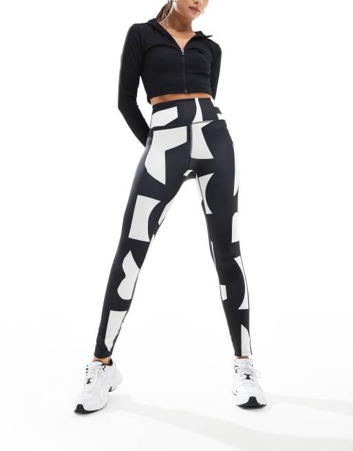 Monki – Czarno-białe bezszwowe legginsy do jogi z podwyższonym stanem i abstrakcyjnym wzorem