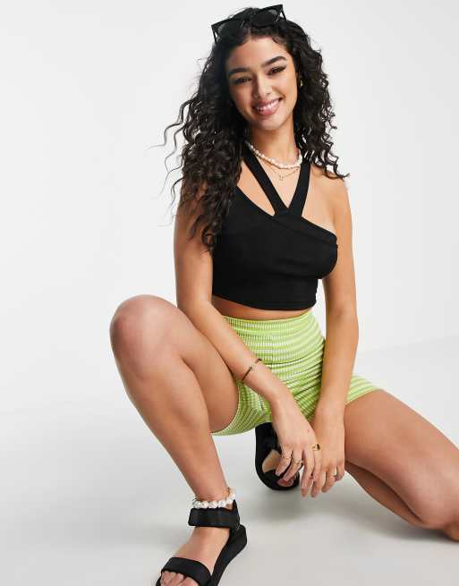 Monki – Czarny top na ramiączkach z wycięciami i wiązaniem