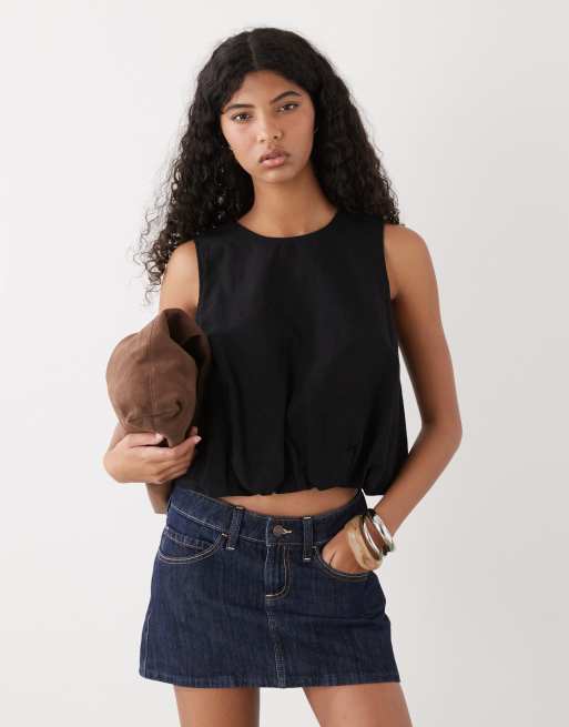 Monki – Czarny top z mieszanki lnu o bufiastym kroju