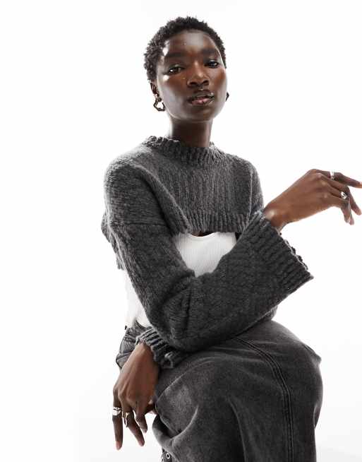 Monki – Grafitowe dzianinowe bolerko z fakturowanej przędzy