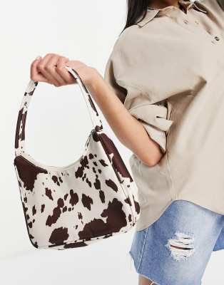Monki – Hilma – Torebka na ramię z materiału z recyklingu w krowie łaty