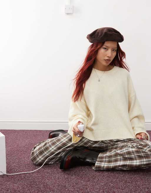 Monki – Kremowy luźny sweter dzianinowy z okrągłym dekoltem