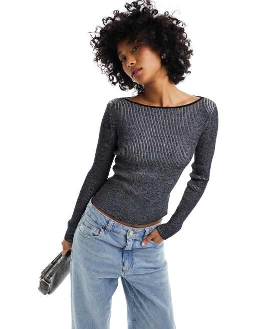 Monki – Krótki dzianinowy top w czarno-białe paski