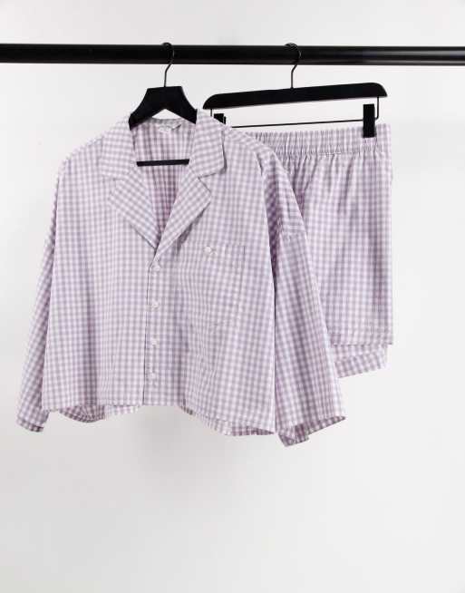 Monki – Lana – Liliowa piżama z bawełny w kratkę vichy