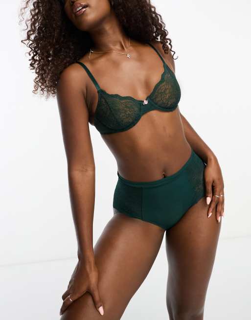 Monki – Mieszaj i łącz – Ciemnozielony koronkowy biustonosz z fiszbinami