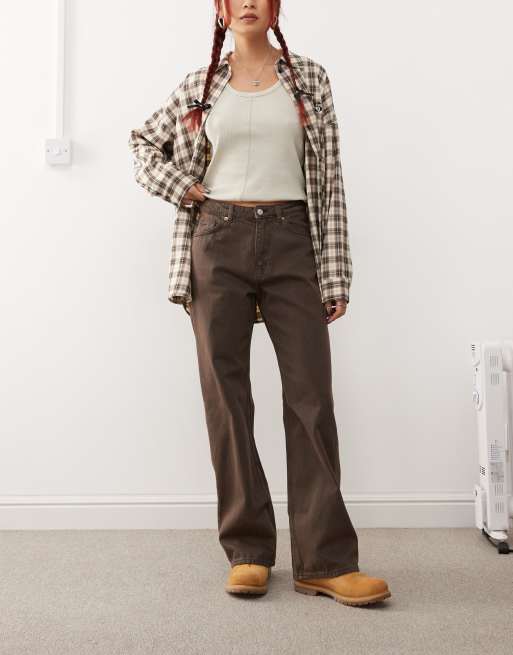 Monki – Naoki – Brązowe luźne jeansy z obniżonym stanem