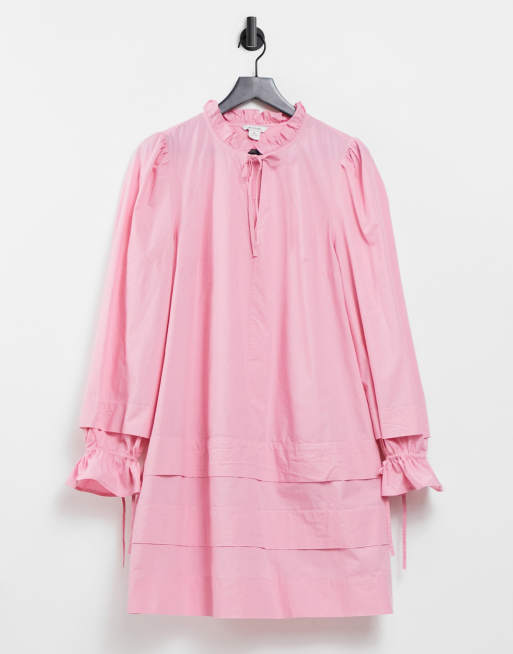 Monki – Rosanna – Różowa luźna sukienka mini z ozdobnym wiązaniem