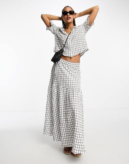 Monki – Spódnica maxi w czarno-białą kratkę, część zestawu