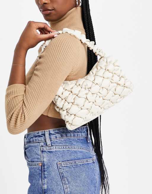 Monki – Taro – Satynowa pikowana torebka na ramię beżowym - BEIGE