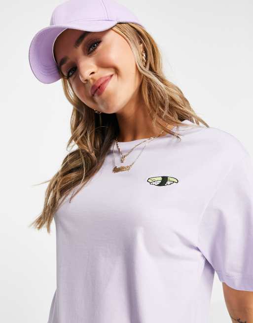 Monki – Tovi – Liliowy bawełniany T-shirt z nadrukiem sushi – MBLUE