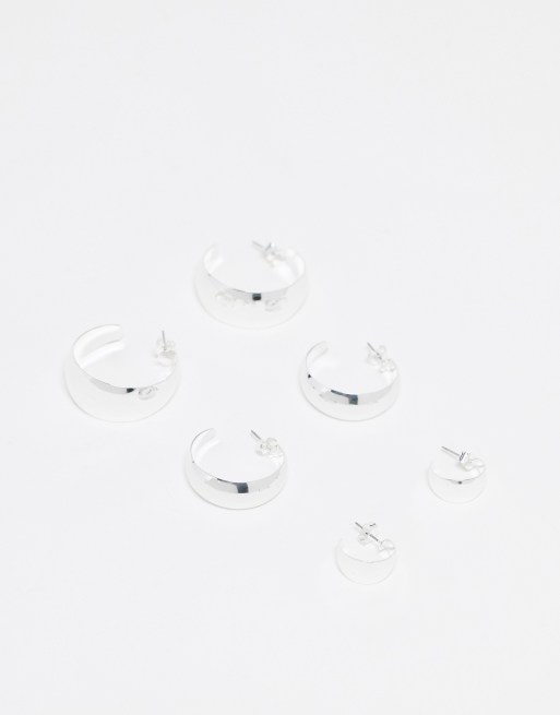 Monki – Zestaw 3 par masywnych szerokich kolczyków-kół w kolorze srebra