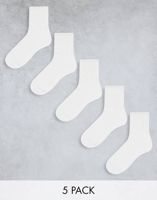 Monki – Zestaw 5 par białych bawełnianych skarpetek - WHITE