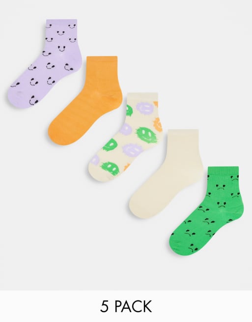 Monki – Zestaw 5 par skarpetek w różnych kolorach ze wzorem