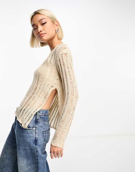 Moon River – Owsiany dzianinowy top z długimi rękawami, asymetrycznym dołem i rozcięciem z boku