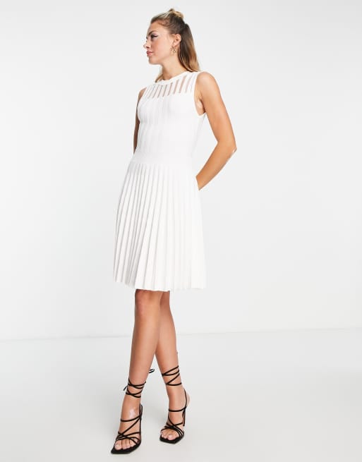 Morgan – Biała dzianinowa sukienka midi typu skater ze wstawkami