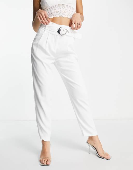 Morgan – Białe spodnie cygaretki z paskiem i podwyższonym stanem