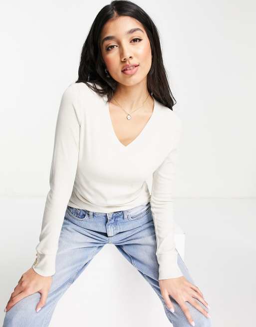 Morgan – Kremowy sweter z dekoltem w kształcie litery V i zapięciem na guziki
