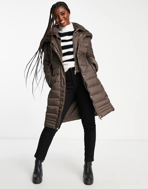 Morgan – Płaszcz ocieplany w kolorze czekoladowym z ozdobnym puszystym kapturem z imitacji futra