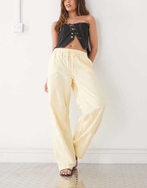 Motel – Lniane cytrynowożółte spodnie o luźnym kroju z szerokimi nogawkami