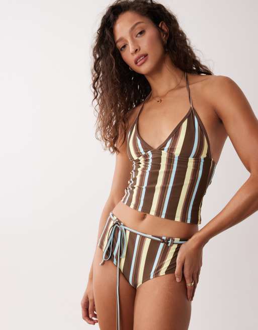 Motel – Tankini w brązowo-niebieskie paski