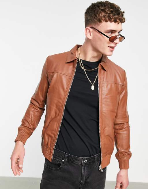 Muubaa – Dopasowana skórzana kurtka bomberka z kołnierzykiem
