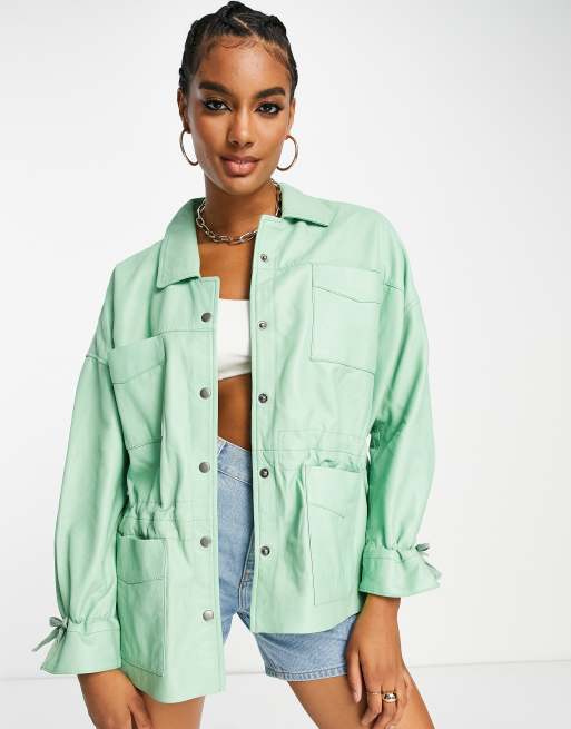 Muubaa – Skórzana miętowa kurtka oversize z troczkami