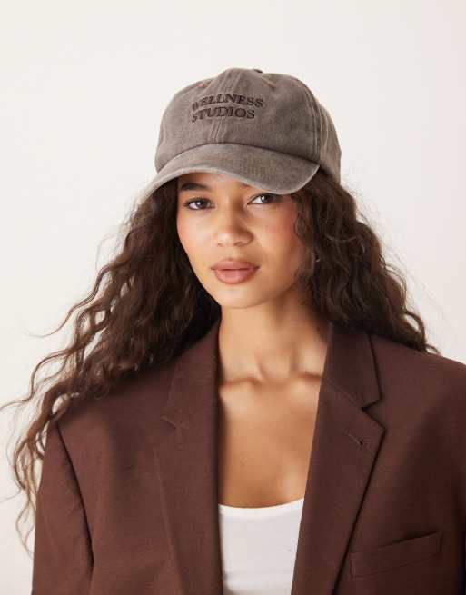 My Accessories – Baseballowa czapka z daszkiem w spranym brązowym kolorze z napisem Wellness Studios