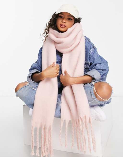 My Accessories London – Bardzo miękki szal z frędzlami w kolorze jasnoróżowym
