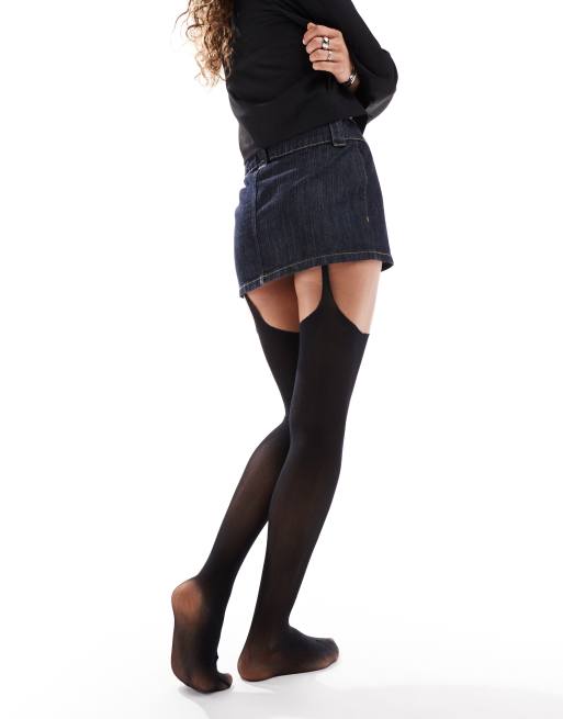 My Accessories London – Czarne rajstopy w stylu pończoch