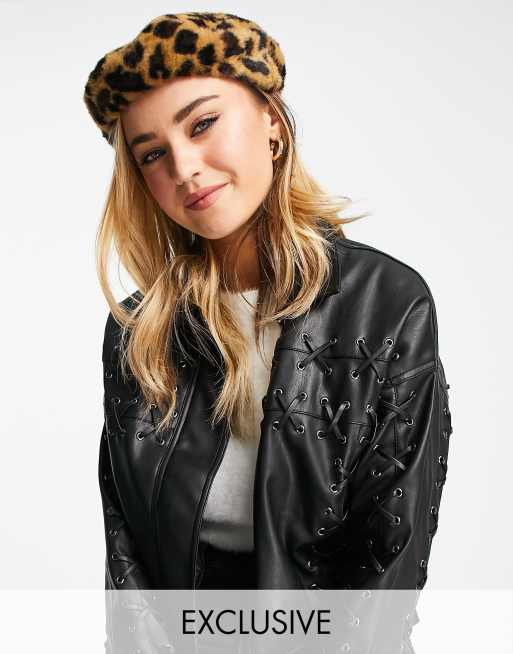 My Accessories London Exclusive – Beret ze sztucznego futra w panterkę