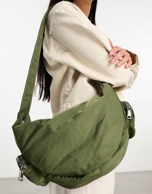 My Accessories London – Nylonowa torebka w kolorze khaki z kieszeniami