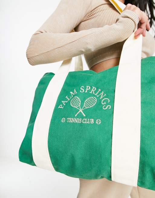 My Accessories London – Palm Springs – Kremowo-zielona duża torba typu tote