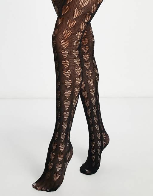 My Accessories London – Prześwitujące czarne rajstopy we wzór w serca