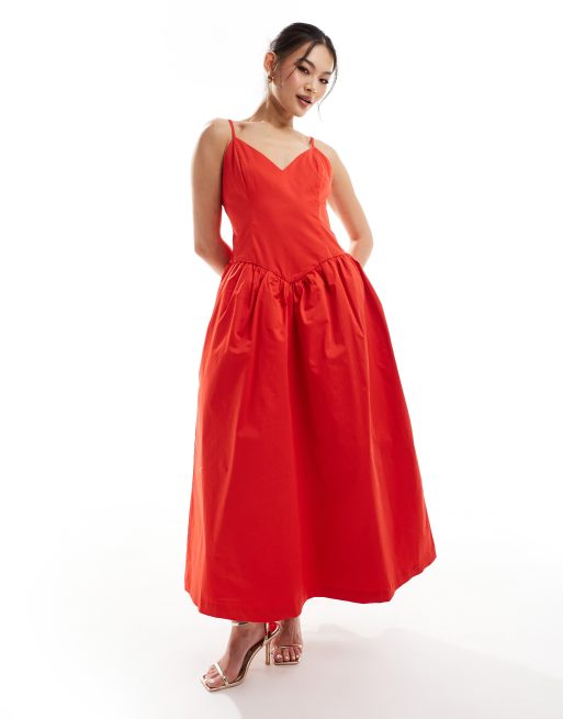 NA-KD – Obszerna czerwona sukienka midi na ramiączkach