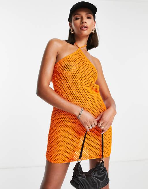 NA-KD x Melissa Bentsen – Pomarańczowa dzianinowa sukienka mini z dekoltem halter