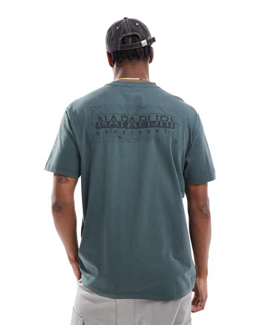 Napapijri – Albula – Zielony T-shirt z logo i nadrukiem na plecach