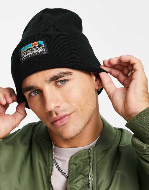 Napapijri – Czarna czapka beanie z naszywką z logo