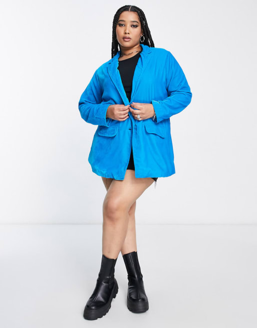 Native Youth Plus – Jaskrawoniebieski aksamitny zestaw: marynarka oversize i dzwony