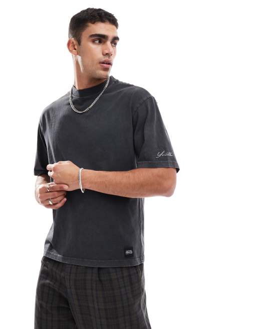 Native Youth – Czarny T-shirt z efektem sprania o luźnym kroju