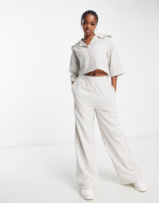 Native Youth – Kolorowe teksturowane spodnie z bawełny z szerokimi nogawkami, część zestawu