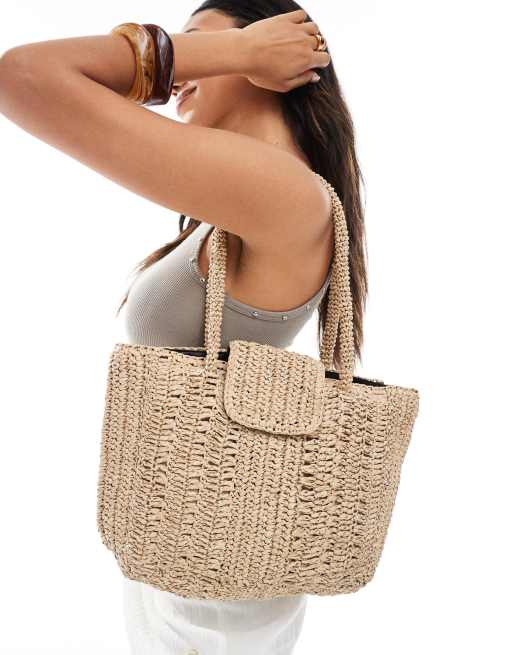 Native Youth – Torebka z rafii w kolorze naturalnym z klapką na górze