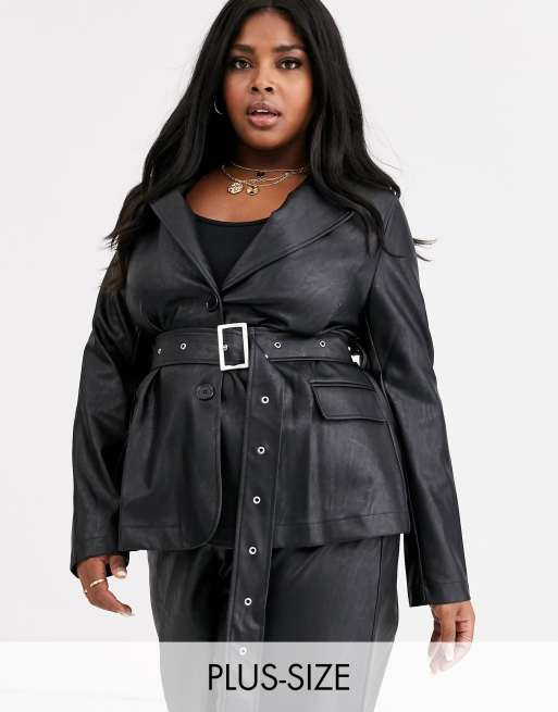 Neon Rose Plus – Marynarka z imitacji skóry z paskiem