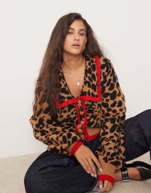 Neon Rose – Kardigan z dzianiny pointelle w panterkę z kontrastowym wykończeniem