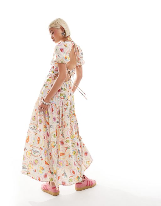 Neon Rose – Kolorowa luźna sukienka warstwowa midaxi