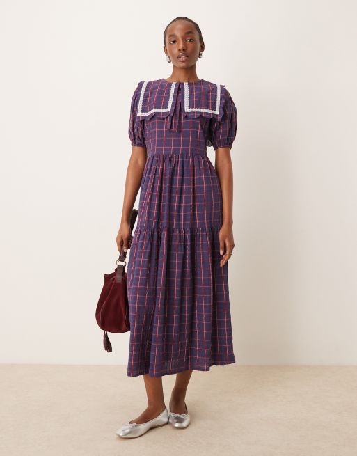 Neon Rose – Kolorowa sukienka warstwowa midaxi z kołnierzem w kratkę