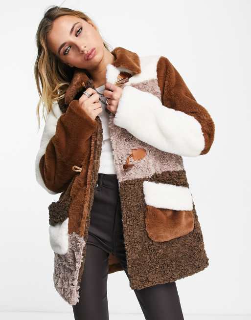 Neon Rose – Zapinany z przodu brązowy płaszcz o pudełkowym kroju z kożuszka