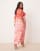 Never Fully Dressed Plus – Czerwono-różowa kontrastowa sukienka midaxi w palmy