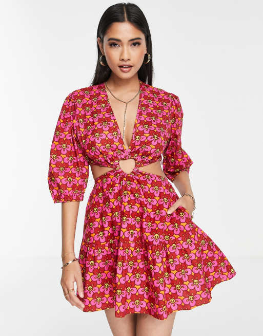 Never Fully Dressed – Czerwona sukienka mini w kwiaty z wycięciem w kształcie serca