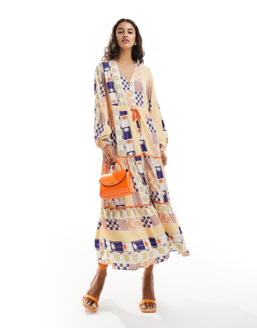 Never Fully Dressed – Sukienka maxi w słoneczny wzór z kontrastowym wykończeniem