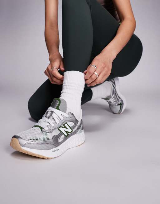 New Balance – Arishi – Srebrno-zielone buty sportowe do biegania